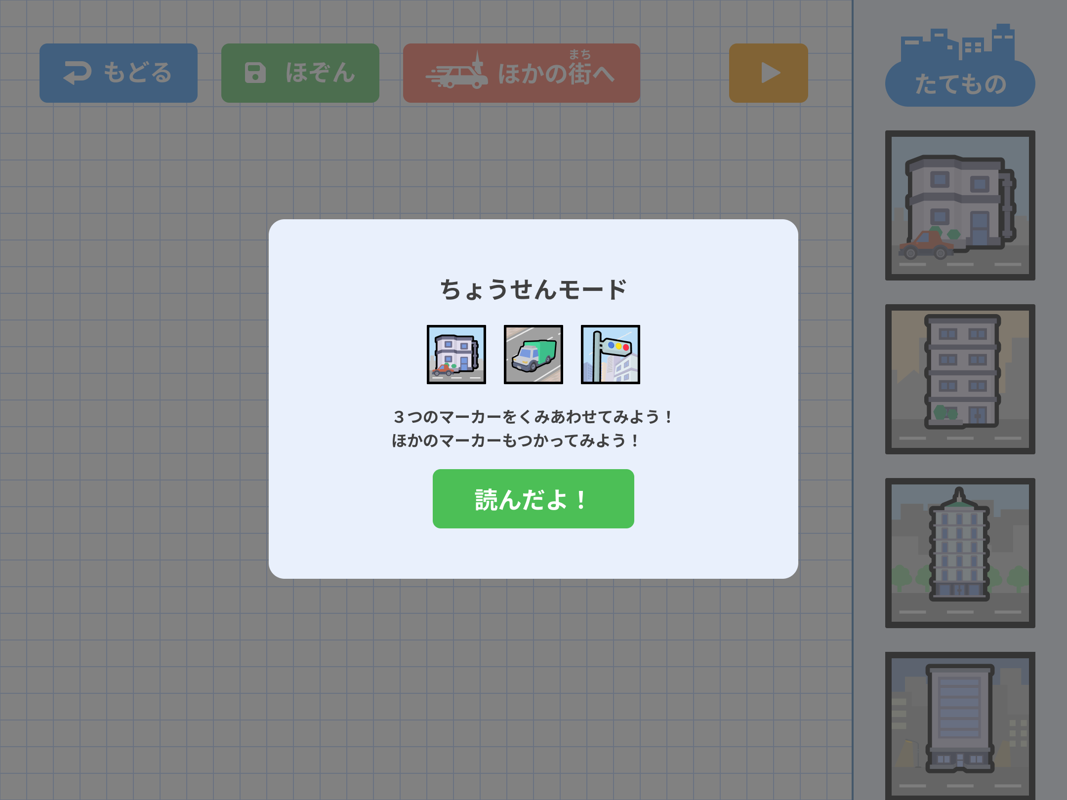 配置するオブジェクトには、「とまっているもの」「うごくもの」「うごきをあやつるもの」といった種類があり、マーカーを使ってAR上に街を表示します。