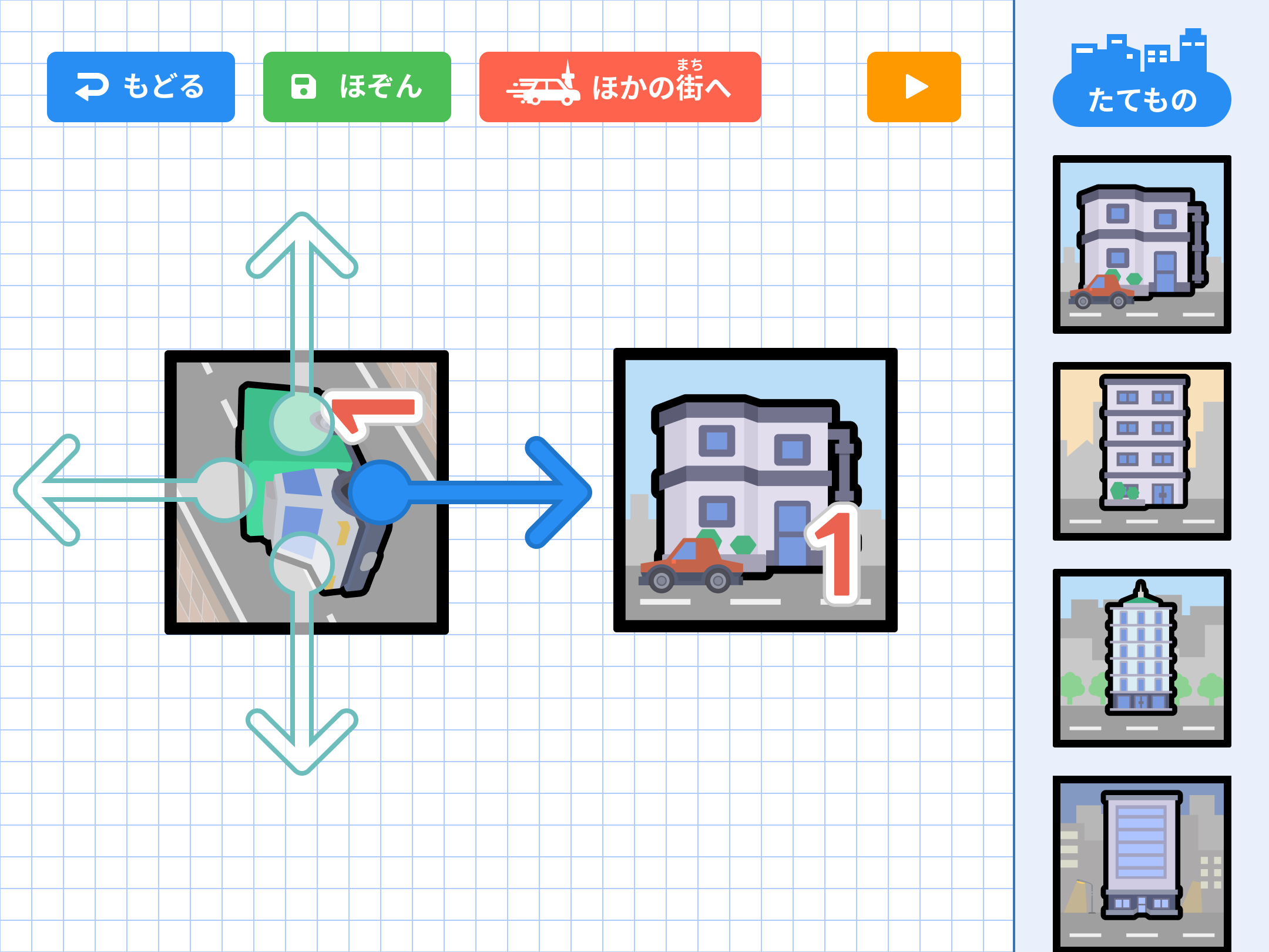 オブジェクト同士の動きや位置関係の整合性を確認しながら、試行錯誤を重ねて街を完成させていきます。