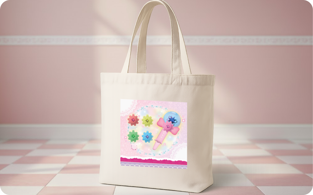 私にとっての「宝もの」は、今も昔も変わらない「好き」という感情です。永久不滅に変わらない好きなものを周囲に普及させるためのトートバッグを考えました。